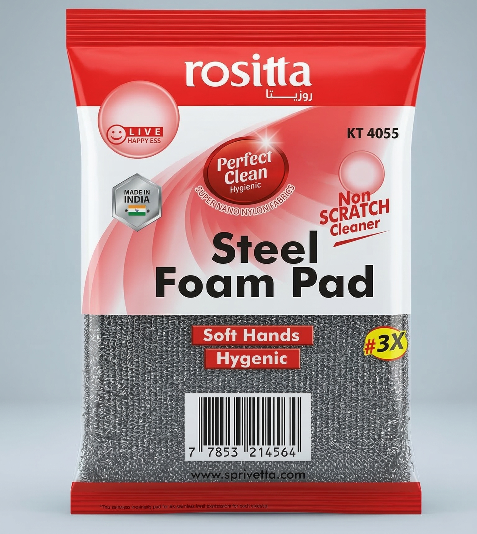Keep your kitchen sparkling with the Rositta Steel Foam Pad, a powerful yet gentle cleaning solution. This pack includes  large pad designed to tackle tough messes without harsh scrubbing or scratching.